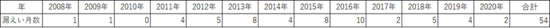 2008年7月からの2020年9月までに漏洩した月数:54件