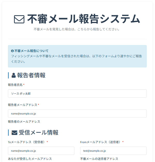 メール受信者は、標的型メールの情報を専用のWebサイトに登録するか、メールに添付・送信して報告できます。